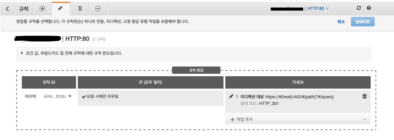 2. 로드밸런서에 HTTP 요청, 규칙을 추가/수정.