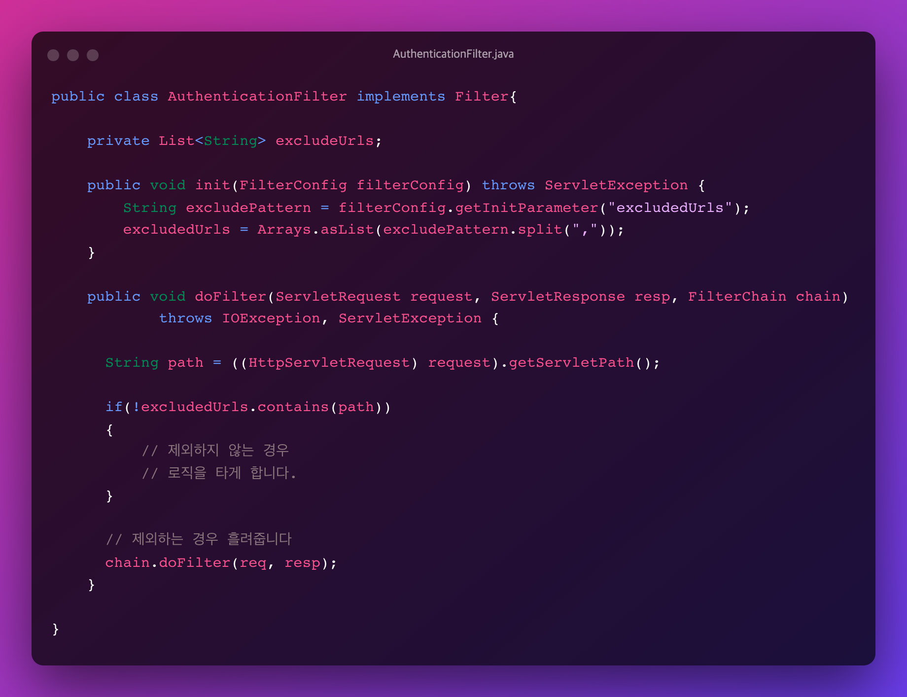com.text.gate.filter.AuthenticationFilter를 생성합니다.