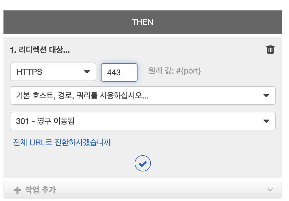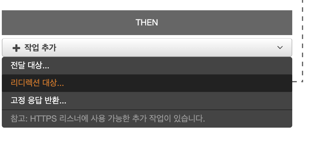 - THEN을 클릭하여 작업 추가 -> 리디렉션 대상