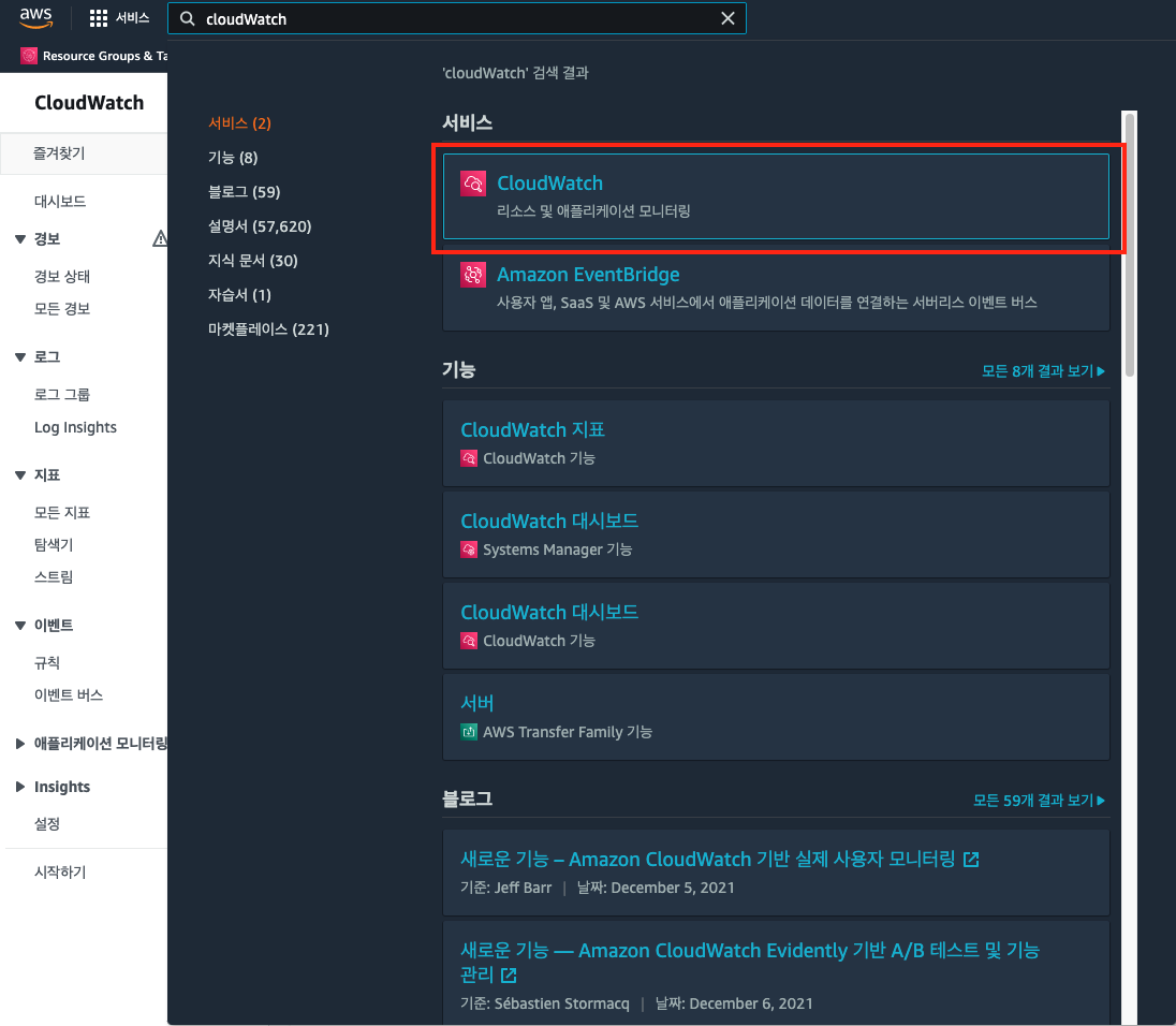 1. CloudWatch로 이동