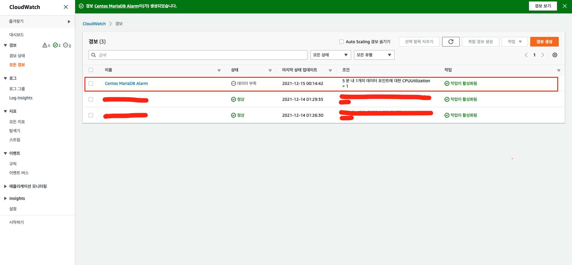- 경보 생성을 다루고 있어, 오토스케링(Auto Scaling)과 인스턴스 작업에 대한 내용은 제외했습니다.