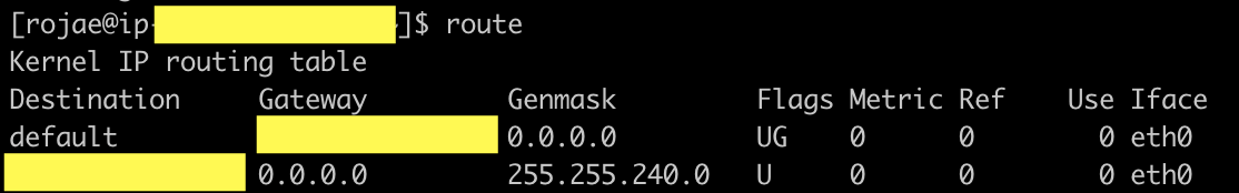 - Genmask: 목적지 네트워크의 넷마스크 주소. 255.255.255.255로 지정되어 있으면 목적지 호스트의 주소, 0.0.0.0으로 지정되어 있으면 기본 게이트웨이 주소를 의미합니다.