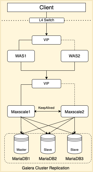 하지만 의도치 않게, WAS 서버 내부에 Maxscale이 위치하여 KeepAlived를 적용하지 않은 경우