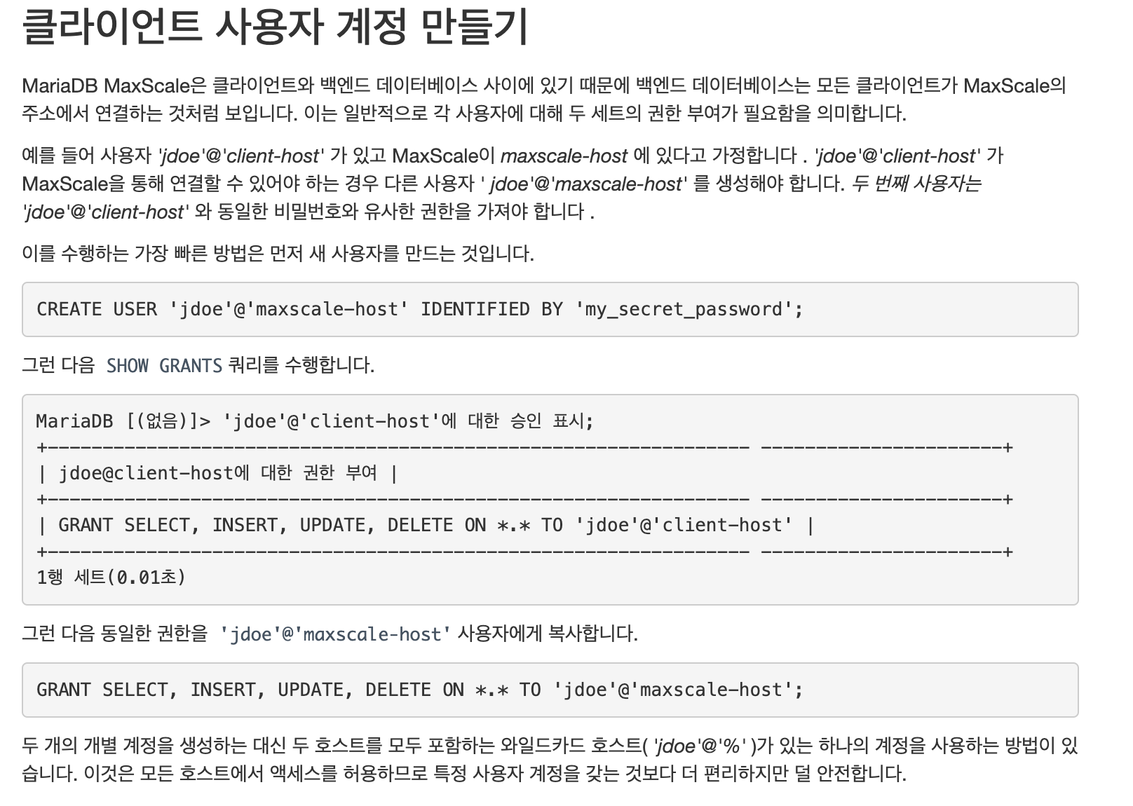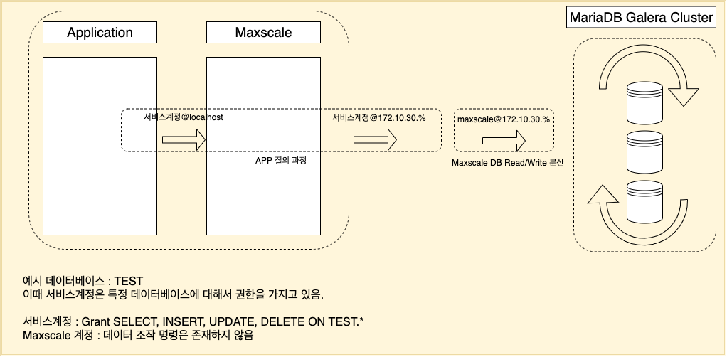 - 동일한 계정과 권한을 client-host와 maxscale-host에 할당해줘야 한다.