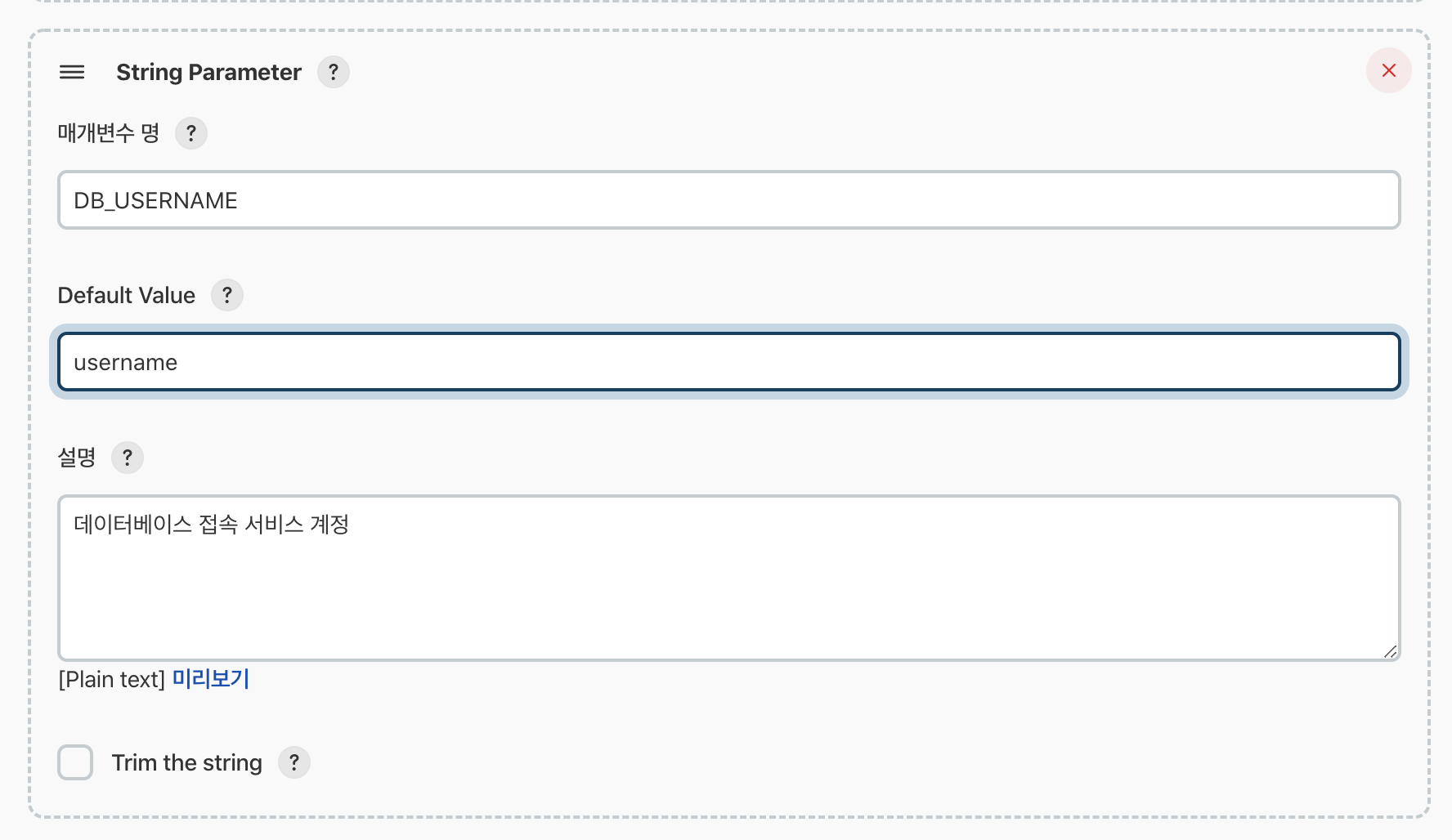 - Github에 데이터베이스 접속 정보를 "특정 문자열"로 설정하여, Jenkins에서 변경해줍니다.
