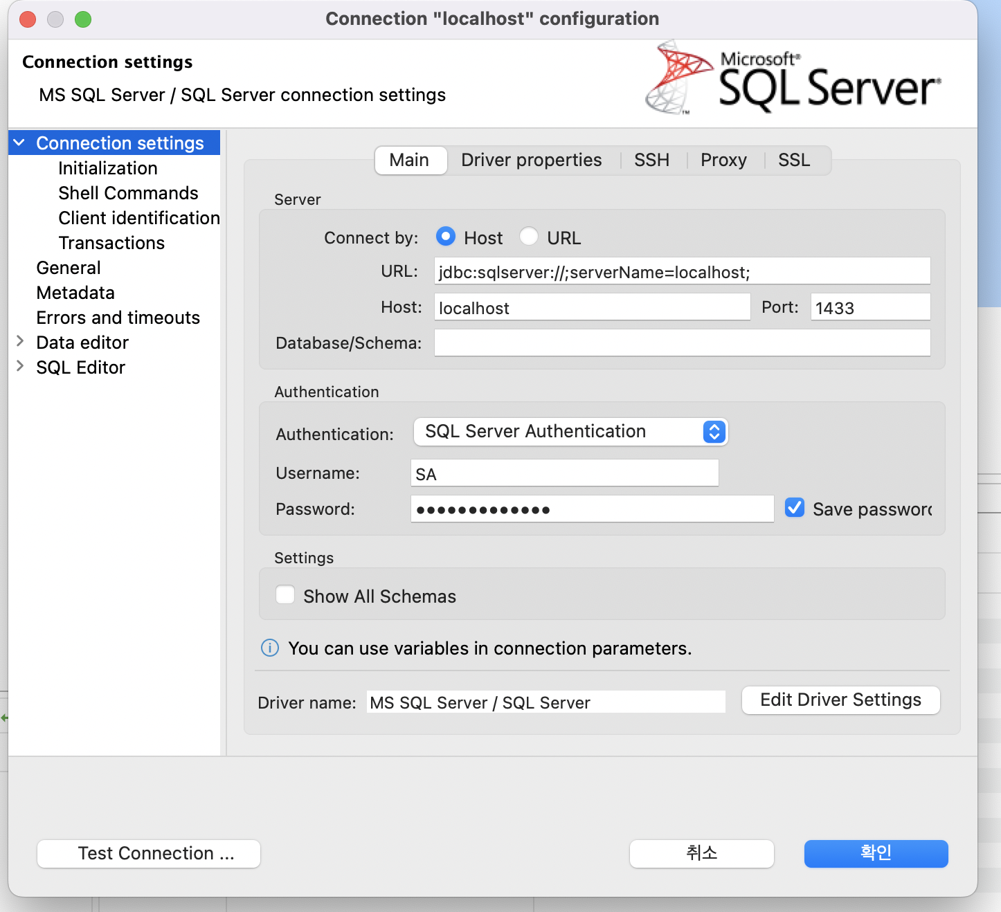 하지만 MSSQL은 macos에 설치를 할 수 없다.