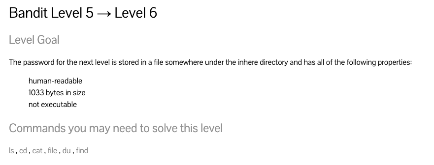 bandit5@bandit:~/inhere$ find ./* -size 1033c -readable ! -executable # GOOD