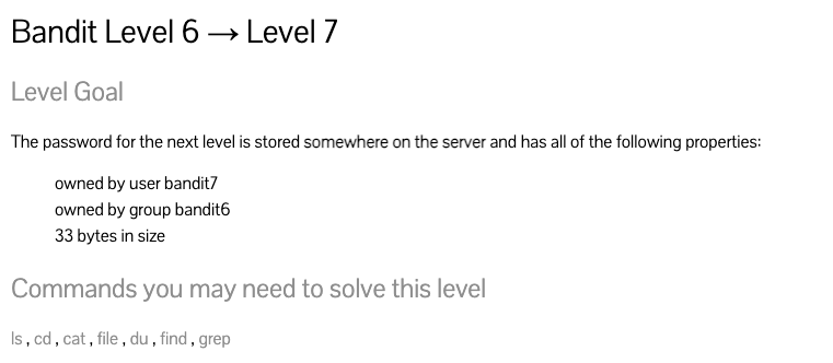 user가 bandit7이고, group이 bandit6이며 size가 33바이트인 파일을 찾으면 된다.