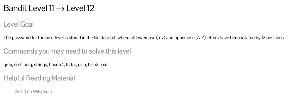 bandit11@bandit:~$ cat data.txt | tr 'A-Za-z' 'N-ZA-Mn-za-m'