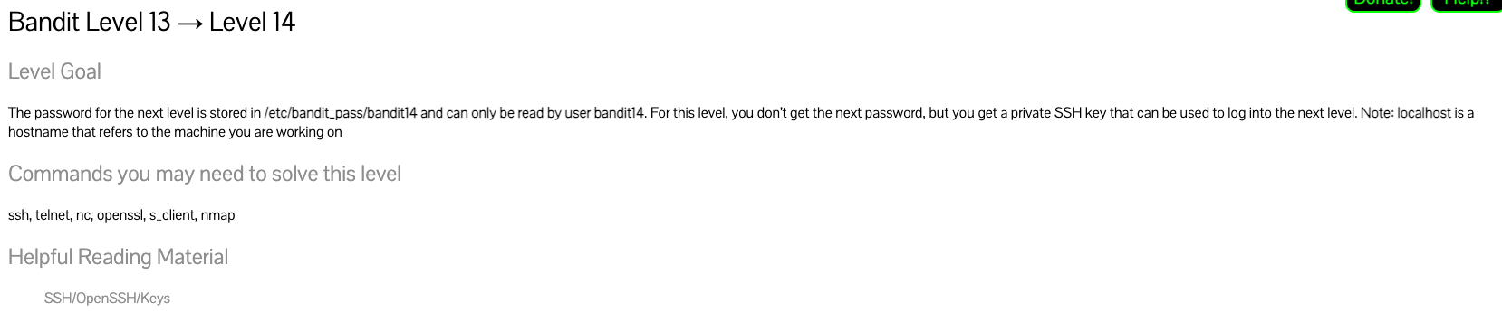 bandit13@bandit:~$ ssh bandit14@localhost -p 2220 -i ./sshkey.private # ssh 접속